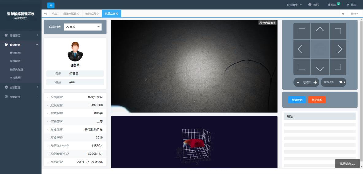 系統功能包括:糧食庫存數量遠程監測、倉內實(shí)景實(shí)時(shí)視頻監控、糧食數量異